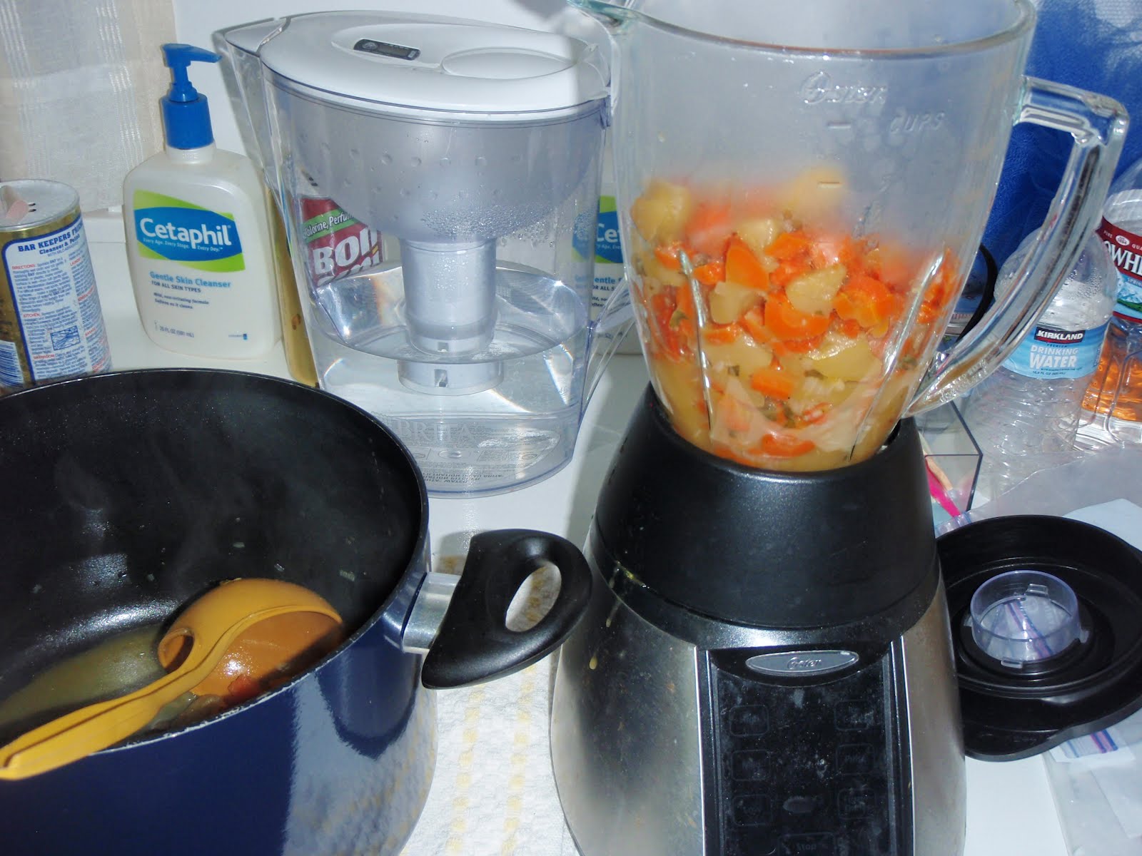 My former roommate Jordan requested this recipe. This being her birthday and me not being anywhere near her now, here is my online present. Sorry you're not here to enjoy it. Make it yourself and do your own dishes, deserter. (love you!) This is a tomato, basil and, wait for it, red wine soup and when served hot you drop mozzarella cubes or balls so they melt and get all yummy in the broth.